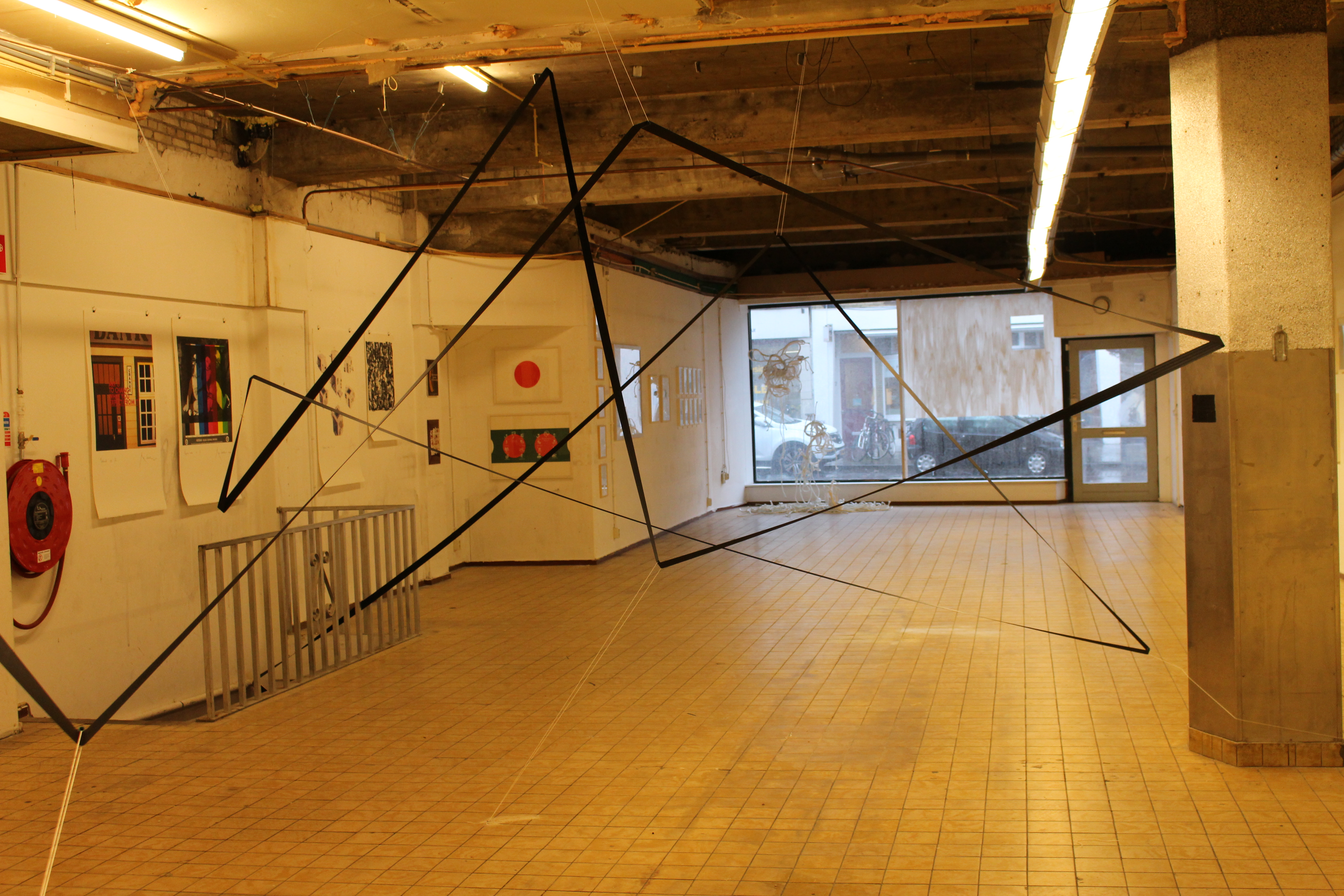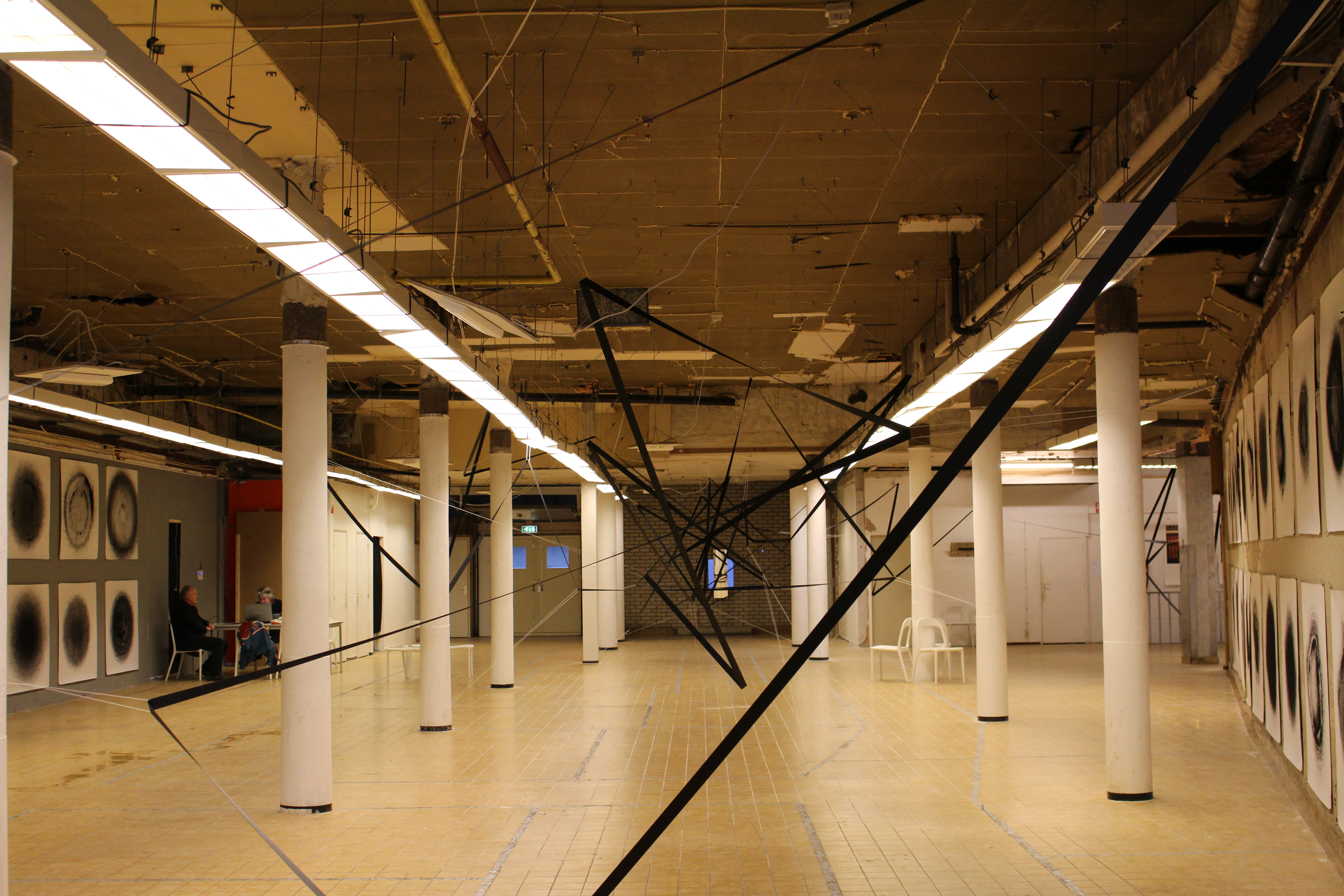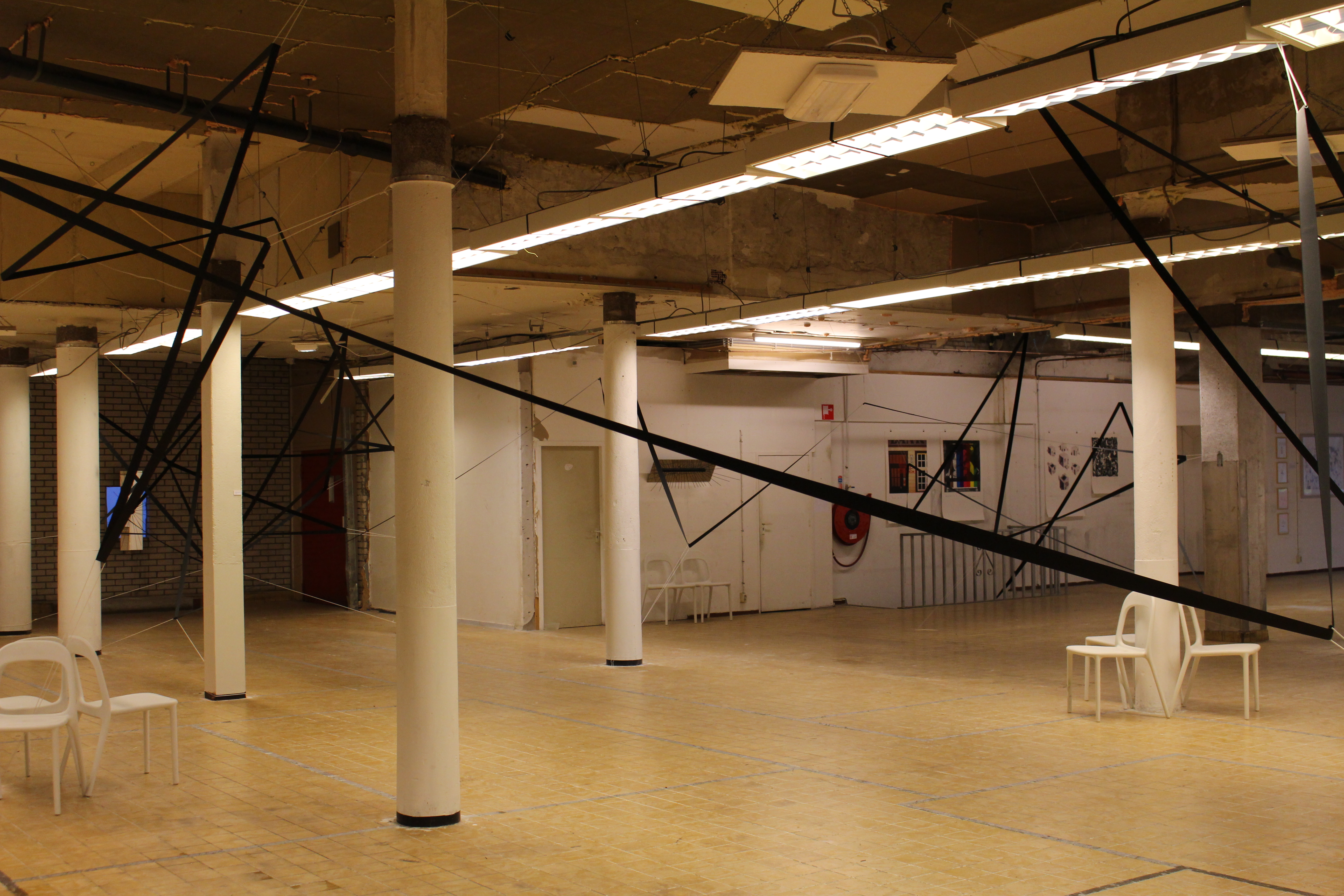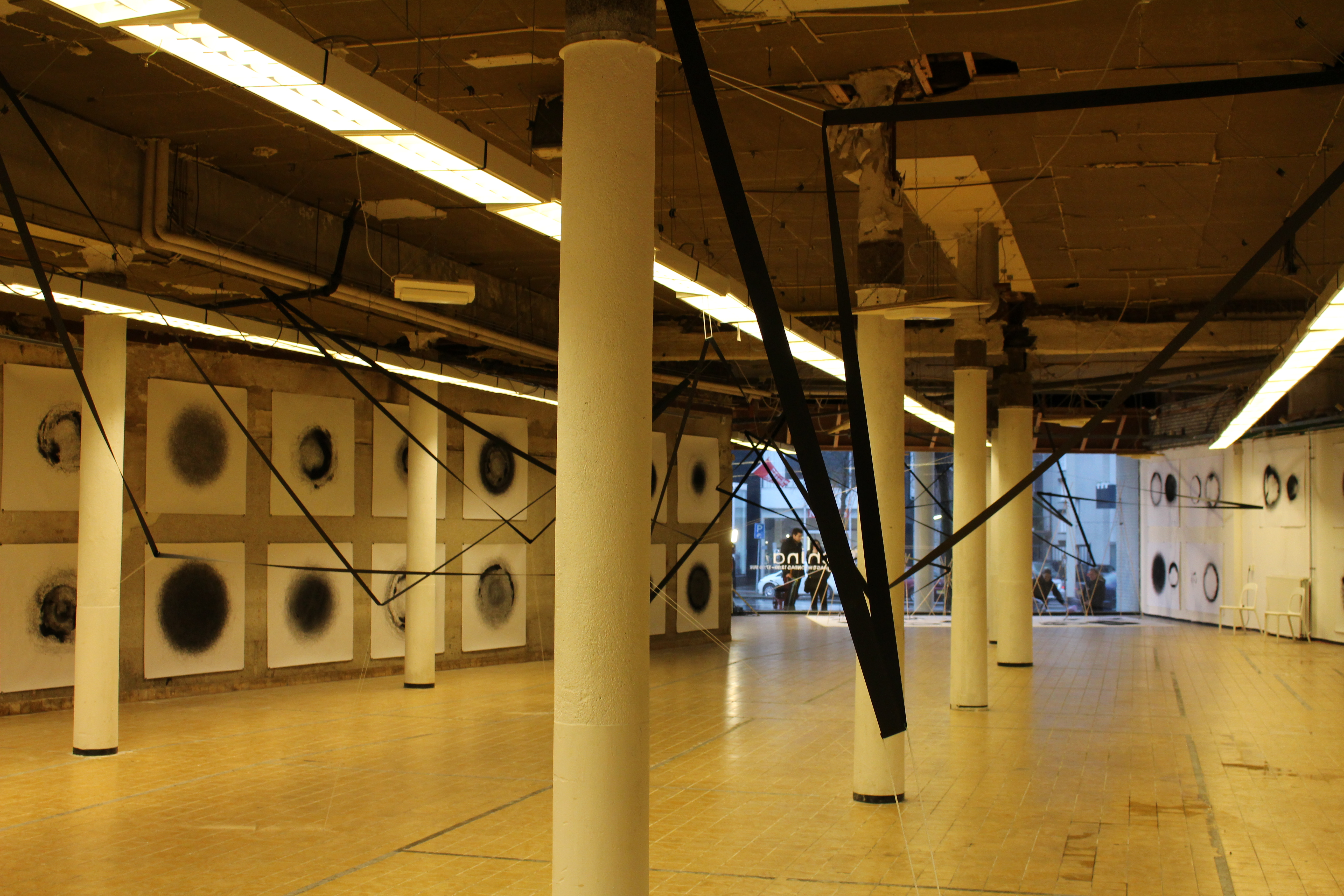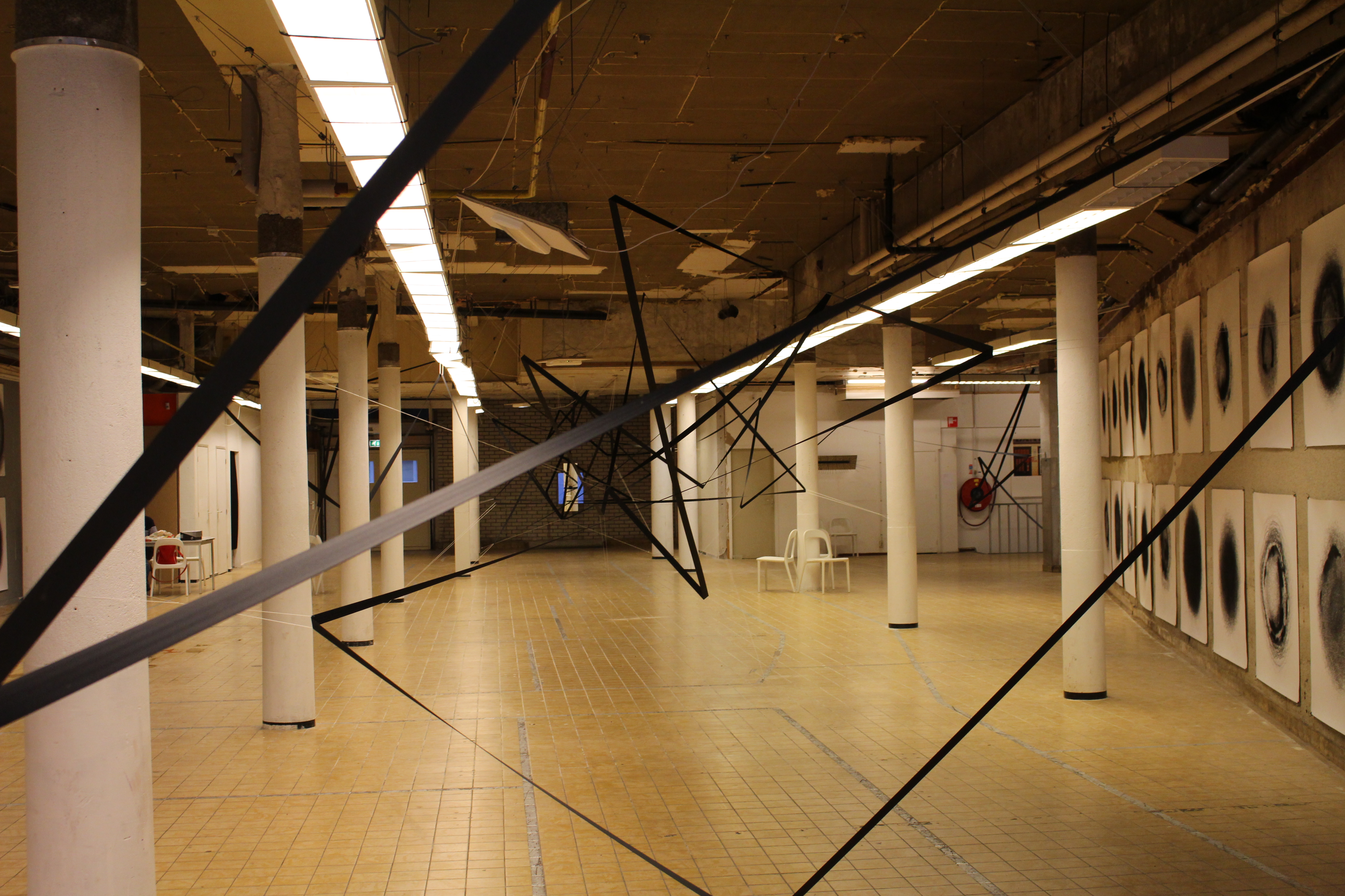 For the duo exhibition ‘Machina’ by Art@Nuyens at van Muijlwijkstraat 23 in Arnhem, I expanded the installation ‘I smelt your scent on the seatbelt II’ to take over the entire space. The installation is accompanied by Nico Schulte’s ‘Black Suns’ which were created over the course of the former exhibition ‘Dots that go for a walk’ by his drawing machines.