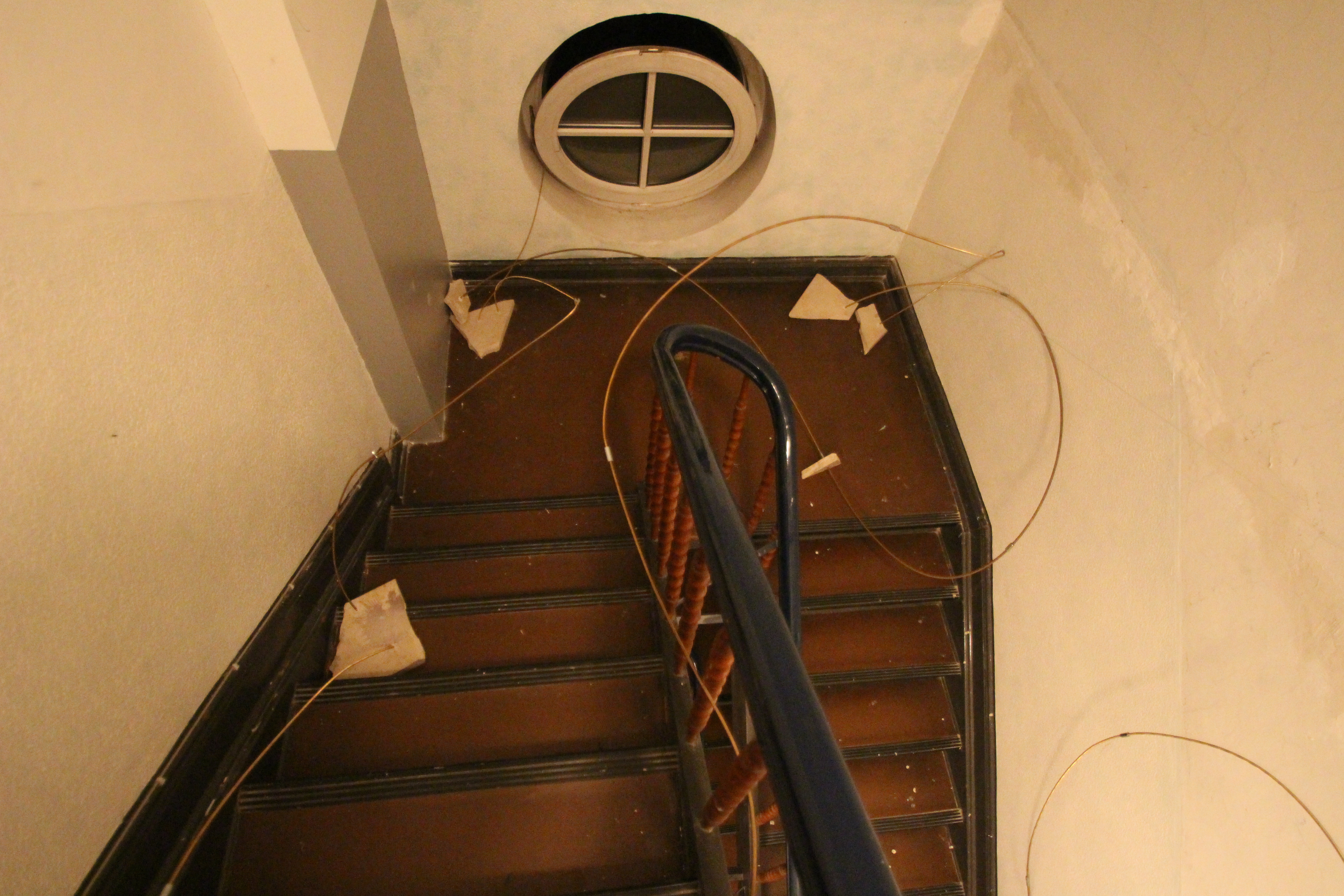 The site specific installation “Onera’s Flight” was originally created and installed for the occasion of Open Studios Dortmund in May 2016, but its life was prolonged for 7 months during which it presented itself as an obstacle / challenge / interactive art piece on the studio staircase. The concept was thought of by myself and Nina Nowak, and we collaborated on the preparation of the materials, upon which the installation itself was later created by myself.