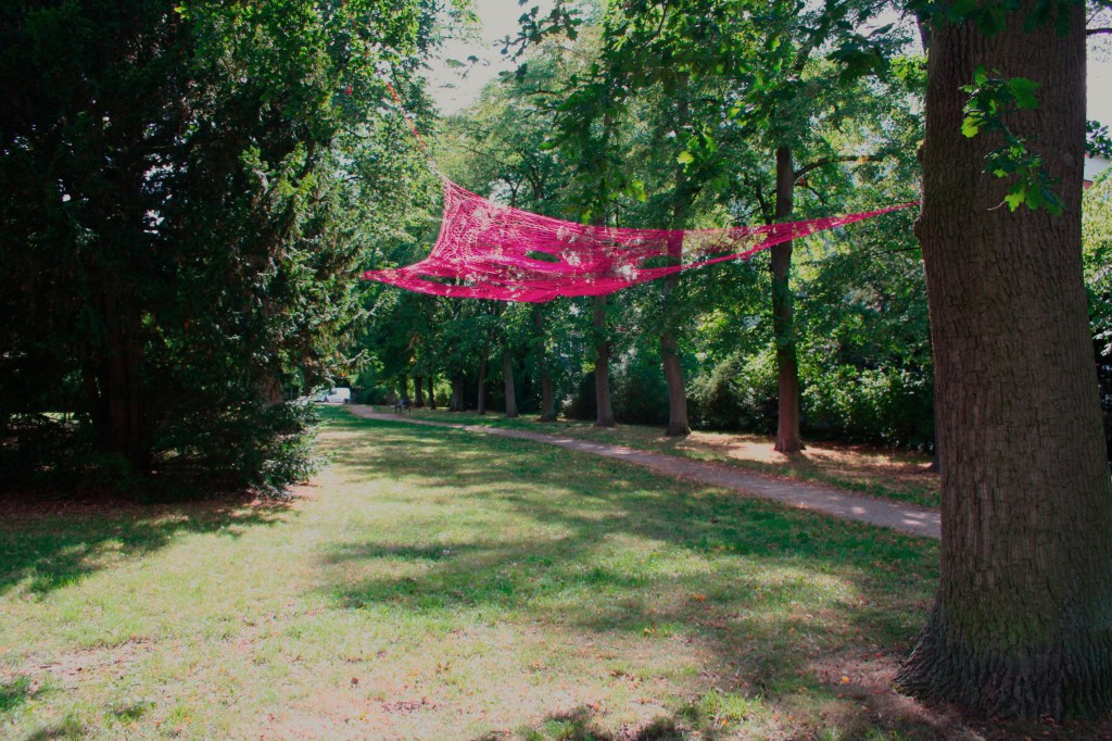 Parkomanie 2023 – Zwischenraum Space Between is a group exhibition in a public park in Großburgwedel by Hannover, in which ten artists present their work on the theme of Space Between. Mine is an installtion, positioned high between the trees. The exhibition runs from 12 August to 30 oktober 2023.
