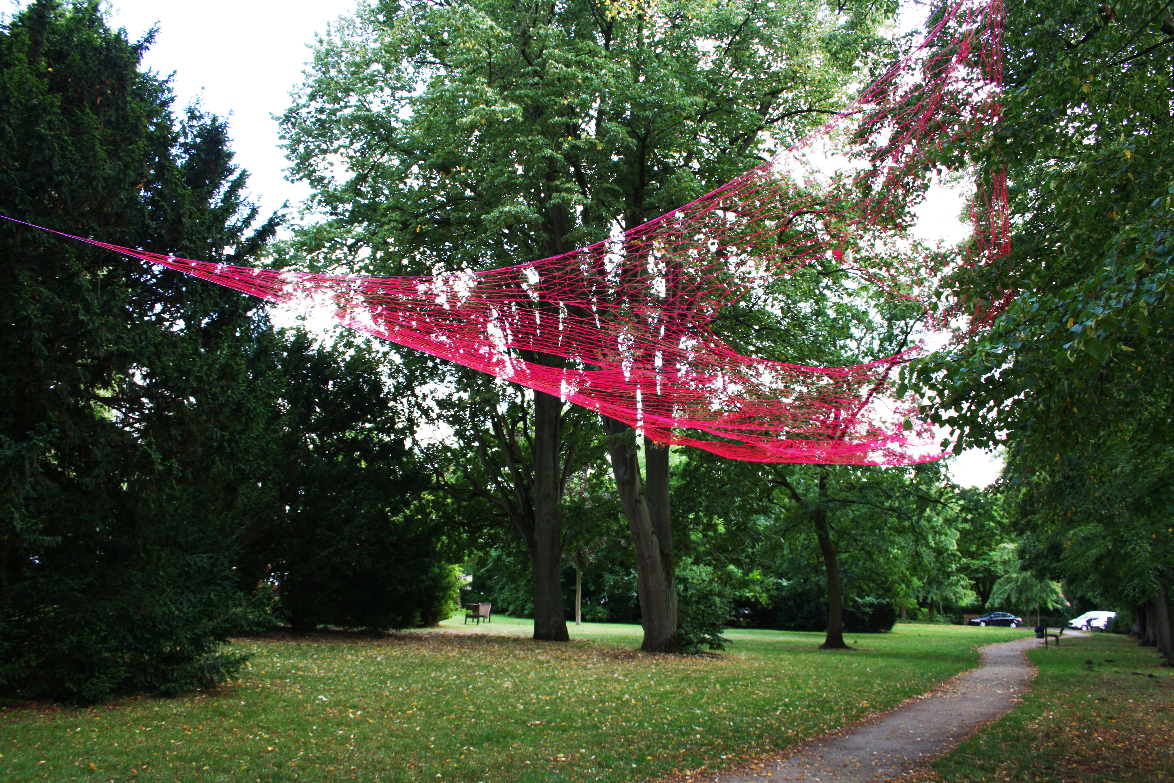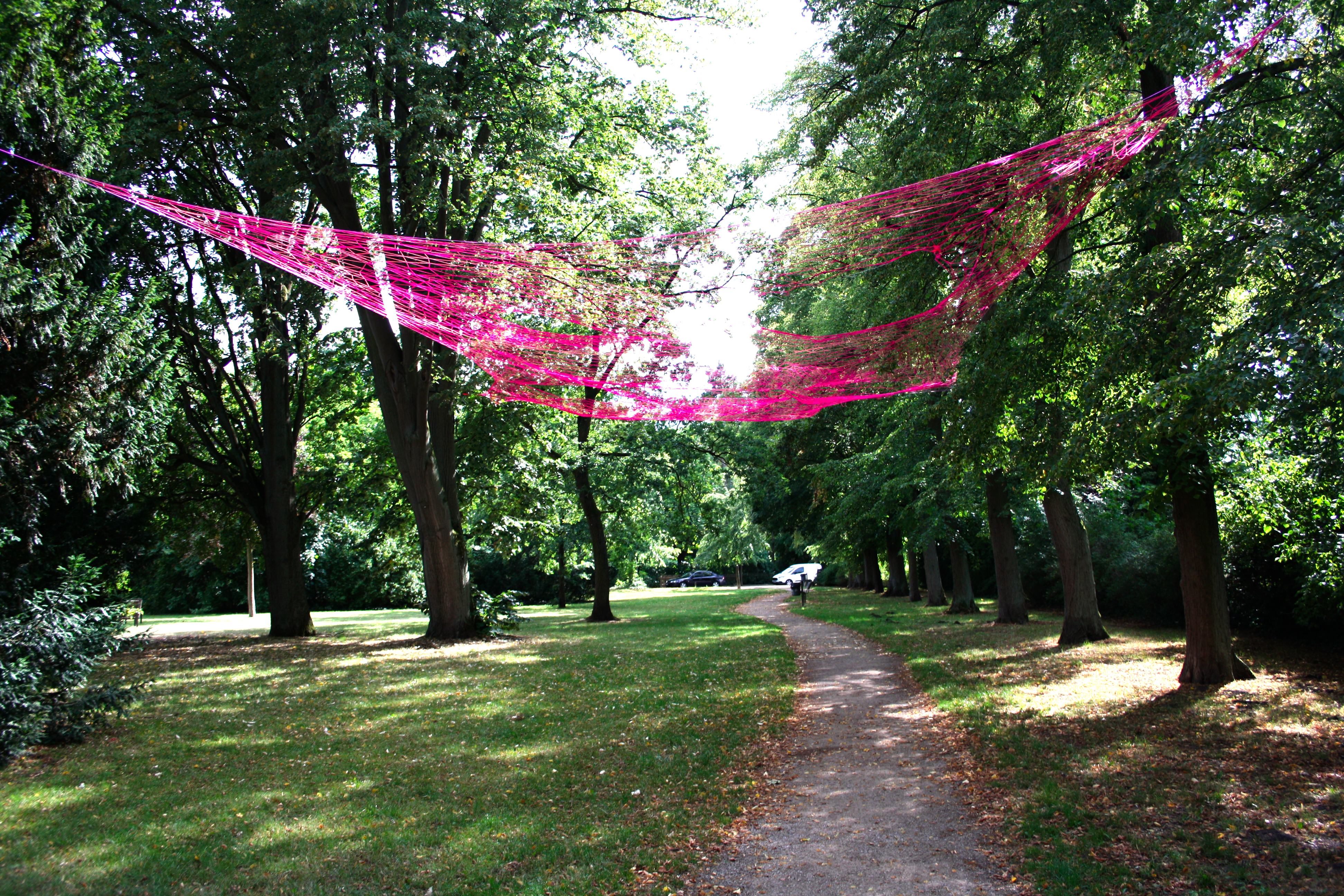Parkomanie 2023 – Zwischenraum Space Between is a group exhibition in a public park in Großburgwedel by Hannover, in which ten artists present their work on the theme of Space Between. Mine is an installtion, positioned high between the trees. The exhibition runs from 12 August to 30 oktober 2023.