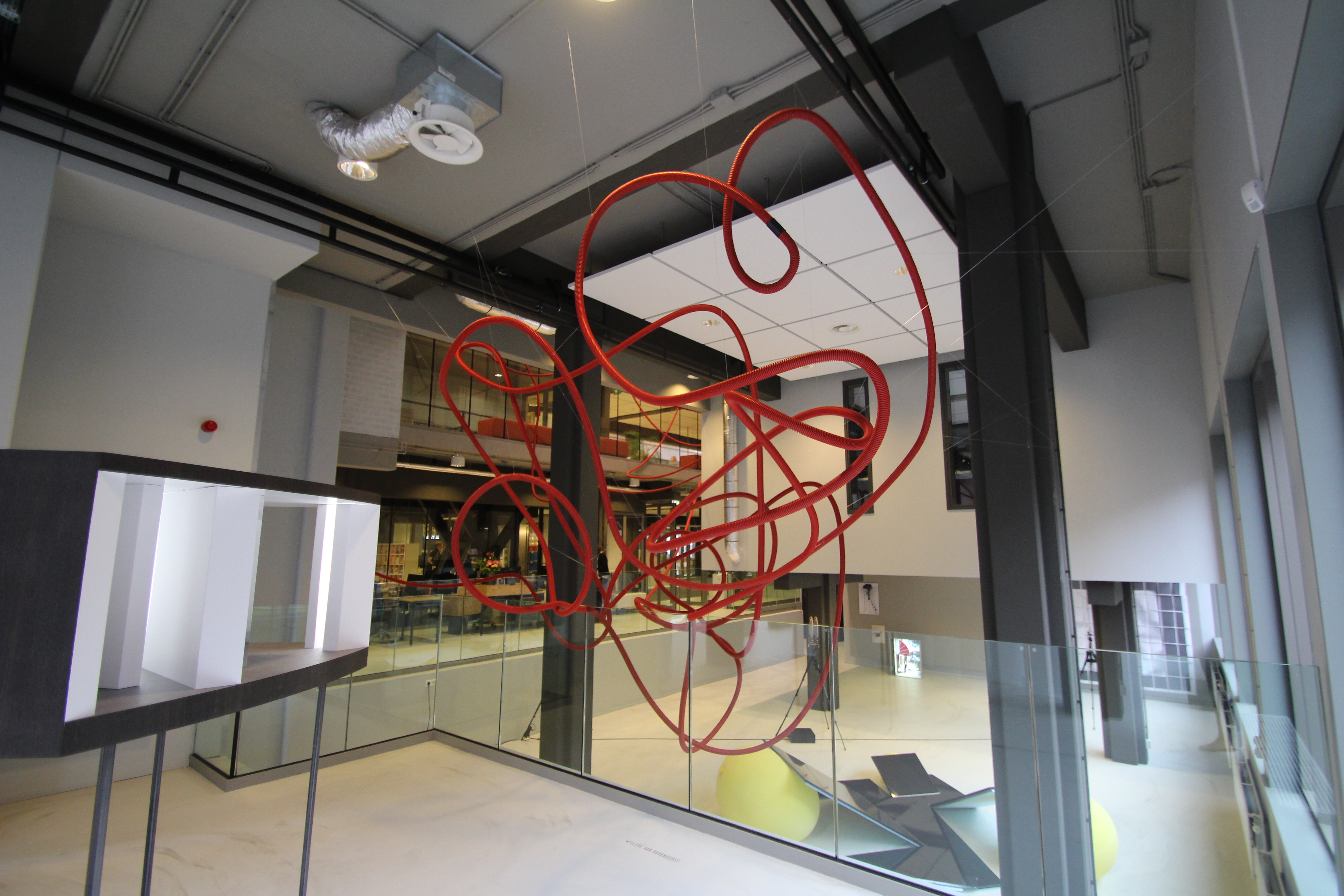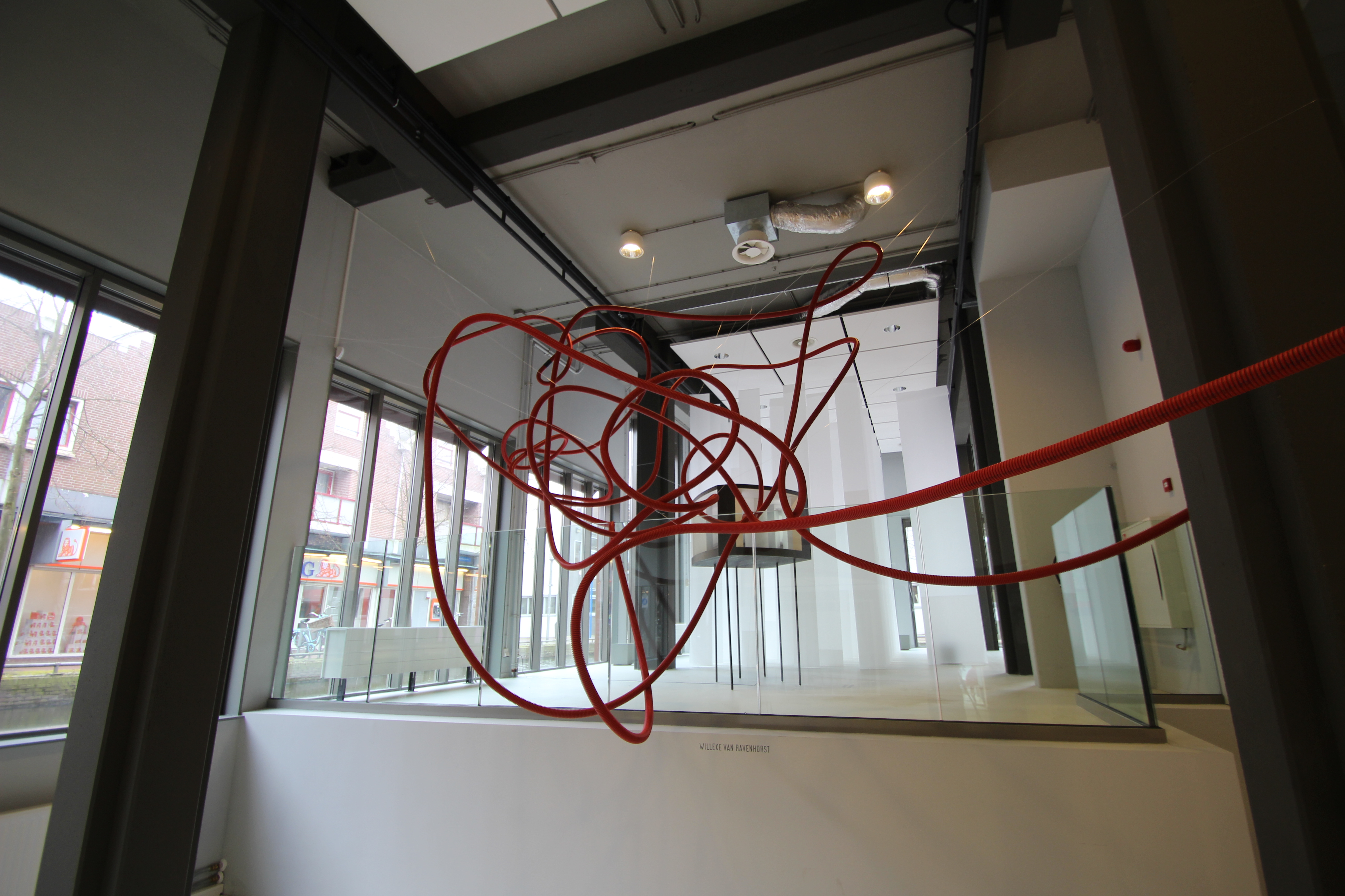 For the exhibition (Re)thinking Space at Corrosia Expo in Almere, the Netherlands, I created a site specific piece which redefines the space and crawls through the entire exhibition space, including upwards reaching all floors of the building.