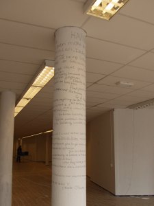 In de tentoonstelling “Anything but Paint” van EPIX, heb ik op de ruimte gereageerd met een aantal ruimtelijke werken opgebouwd uit kabel en wol. Deze werken zijn site en time specific en reageren ook op de tentoonstelling als geheel. Twee van de drie sculpturen worden tijdens de tentoonstelling verder uitgewerkt. Het proces is hierin erg belangrijk, en wordt dan ook vastgelegd op film. Daarnaast reageer ik ook met bestaande teksten die ik op bepaalde manieren in de ruimte plaats. In de tweede tentoonstelling op dezelfde locatie, “Anything WITH Paint” heb ik de werken verder uitgewerkt. Klik op de foto’s van elk specifiek werk voor meer foto’s en informatie. De tentoonstellingen “Anything but Paint” en “Anything WITH Paint” vonden plaats in maart en april 2012 in de tijdelijke galerie ruimte van EPIX op de van muijlwijkstraat 23 in Arnhem. Naast het maken van eigen werk, heb ik ook de invulling van de tentoonstelling verzorgd. Voor meer informatie over EPIX zie www.gallery-epix.com
