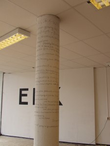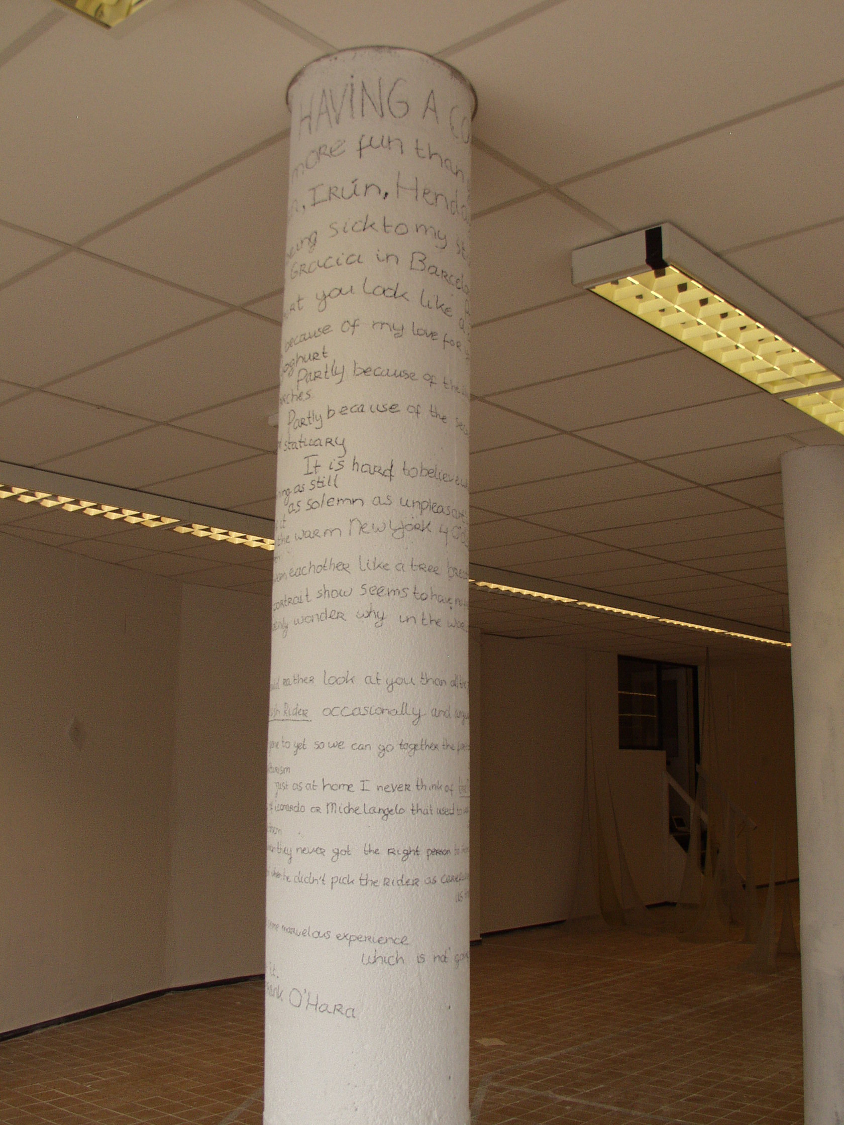 Het werk “Prepare to be Dazzled” bestaat uit het gedicht “Having a Coke with you” van Frank O’Hara, dat in de rondte op een pilaar geschreven is. Ik lees dit gedicht op de manier waarop ik hem gepresenteerd heb voor in de video bij wijze van performance.
