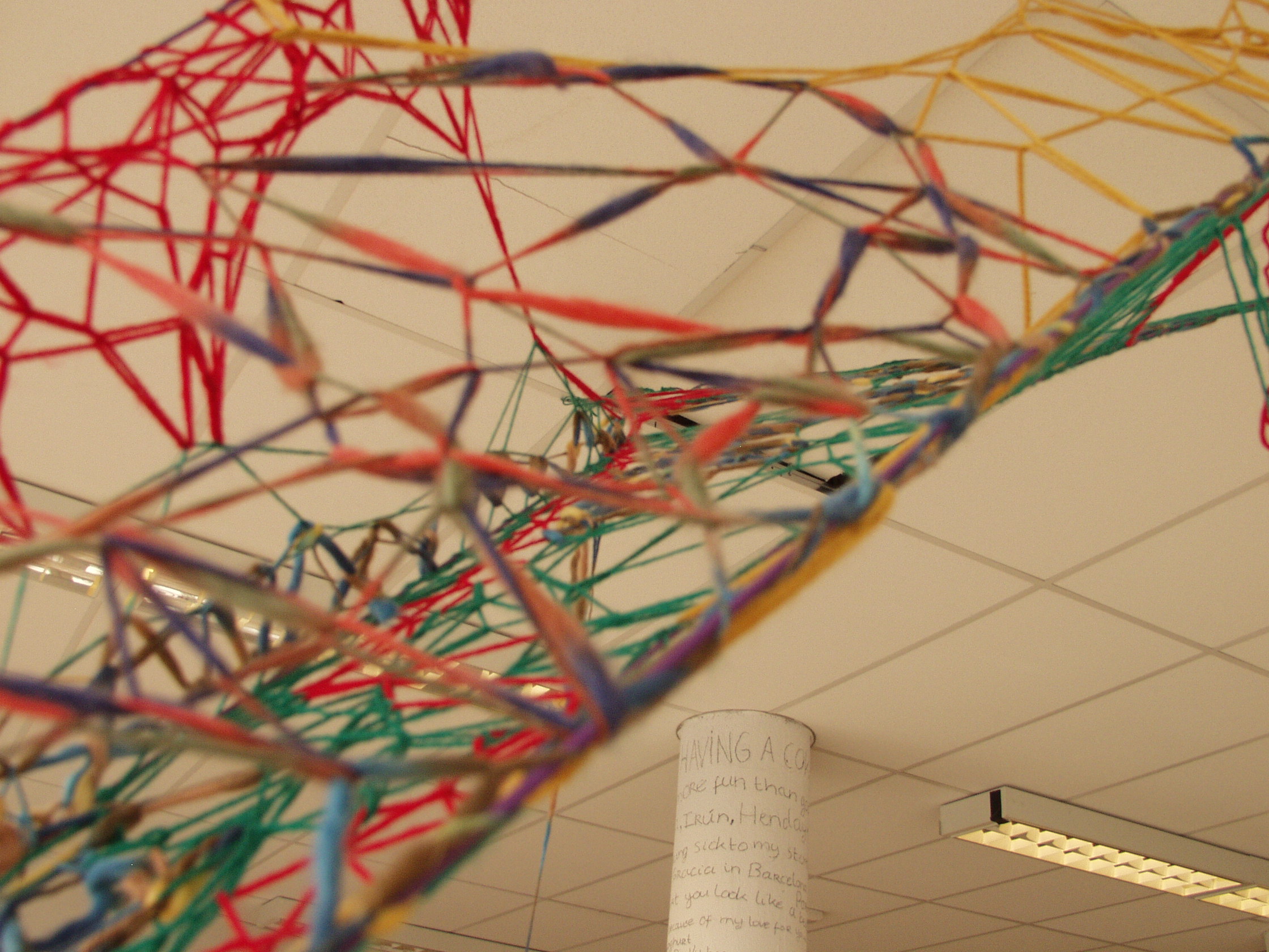 “Stating the obvious” is een site specific werk gemaakt in en reagerend op de tijdelijke expositieruimte van EPIX op de van muijlwijkstraat 23 in Arnhem. Het werk is gemaakt van kabel gespannen tussen plafondpanelen en vastgespijkerd op de vloer, ingevuld met een constructie gemaakt van verschillende soorten wol. Het werk reageert op de mogelijkheden van de ruimte en legt tegelijkertijd ongeziene handelingen vast. Daarnaast reageert het op de verandering in de ruimte die gecreëerd wordt door de invulling van de tentoonstelling, omdat het werk deels tijdens de tentoonstelling verder uitgewerkt wordt.